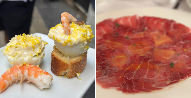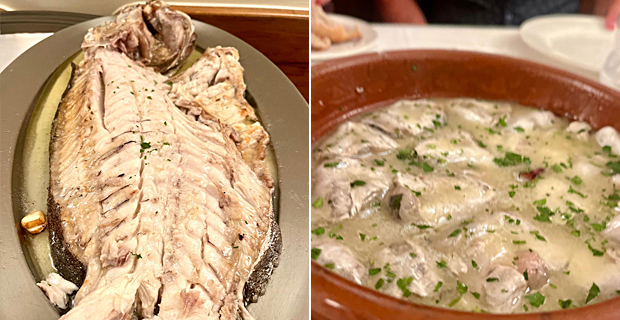 La carta es una declaración de amor a los mejores productos de temporada, van al grano desde el comienzo con un saque mortal, como Carlos Alcaraz. Las setas con yema o en revuelto son de obligado cumplimiento, aunque antes ofrecen los clásicos fríos, cualquier pincho de la barra, ensaladilla rusa, jamón ibérico, ensalada de tomate con ventresca de bonito o carpaccio de atún. Las croquetas son de jamón o gallina, hay calamares, anchoas al ajillo, kokotxas rebozadas o ligadas en salsa, txangurro al horno, pimientos verdes y piparras fritas, sopa de pescado y toda una alineación de mariscos, almejas finas, percebes, navajas, gamba blanca, carabineros o cigalas, plancheados o hervidos, que deben rechupetear antes de entrar a matar con el plato principal. La carta es un alarde de especialidades que volverían cuerdo hasta a un vegano de la playa de Matalascañas. Hay bonito encebollado o en tomate, chipirones Pelayo o en su tinta y una alineación de pescados a la brasa, rape, morrillo de atún, rodaballo, cogote de merluza, besugo, lenguado o mero. Dejen las espinas mondas y las cabezas repeladas. Rematen con pichón estofado, foie gras fresco antediluviano a la plancha, callos y morros o chuleta de vaca con patatas fritas, lechuga, cebolleta y pimientos del piquillo. No tienen escapatoria las torrijas con helado de vainilla y las celebradas fresas a la pimienta con helado de yogur. El servicio de sala no puede ser más amable y eficaz, lo mismo trinchan pescados que llenan las cubiteras de hielo. Disfruten, que nos quedan dos telediarios.