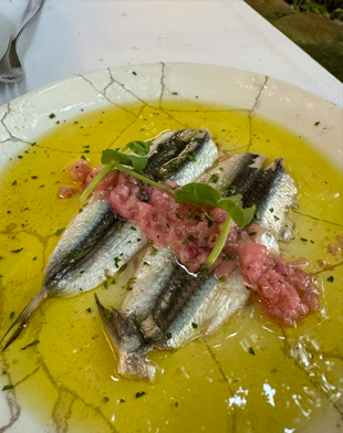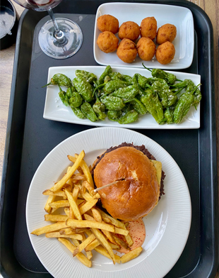 El lugar ha ido cambiando de manos e incluso hubo temporadas en las que estuvo cerrado a cal y canto, y hoy luce como una magnolia en flor y me hace una ilusión del copón porque pertenece a mi paisaje de infancia. La carretera que discurre hasta el lugar, partiendo desde Ventas de Irún y los antiguos terrenos de Porcelanas del Bidasoa, es de no creer. Los verdes van apoderándose del camino en cuanto te pones en marcha y avanzas entre sembrados, viejos graneros y caseríos con su tractor articulado marca “Agria” o “Ebro”, apostado frente a la fachada con su “rotavator” en lo alto del remolque, ¡qué pureza! Poco a poco va asomando de nuevo la civilización y tras varios caseríos reconvertidos en elegantes villas, con sus Land Rover desafiando la ley de la gravedad en cuestas empinadísimas, ¡tachán!, llegas a la cooperativa agrícola y al precioso Estebenea, encajado junto a una regata de ensueño y bajo unos plátanos centenarios que prestan su sombra si hace chicharra y quieres echar un trago en la terraza. El cotarro lo manejan Gonzalo y Martxel, jefe de cocina y flamante parrillero y custodio de las brasas, y entre los dos, tanto monta, gobiernan el negocio para que salgas feliz. En estos tiempos de terraplanismo gastronómico en el que algunos se tragan unas berzas descomunales, ¡ahora que vamos despacio, vamos a contar mentiras, tra-lará!, esta pareja ofrece la posibilidad de que te sientes en un comedor de