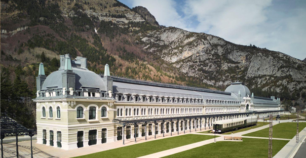 No hay mejor lugar para escapar de tanto petardo calzando botas de apresquí, que reservando habitación en este establecimiento que ofrece comodidad en unas instalaciones montadas a todo tren. Las camas son enormes, mullidas, con ropa de jeque árabe, baños rechulos en los que queda elegantísimo sacarse con pinzas los pelos de la nariz, y una oferta hostelera gestionada por Antonio Salanova, que tiene oficio y presume de flamante estrella Michelin en su vagón-restorán, escondido en los jardines. El lugar tiene historias para regalar, que si el wolframio y el oro de Moscú, aventuras de contrabando, correrías de frontera y leyendas ciertas o inventadas que escuchas boquiabierto y provocan hambre y sed, pues el asombro cierra un rato el estómago pero dobla las ganas una vez recuperas aliento y respiración. Además de la cocina estrellada de alto copete, hay una oferta más relajada que reúne platillos muy apetecibles, ensalada César, ensaimada hojaldrada rellena de filete tártaro, ensaladilla de fonda, migas aragonesas con huevo frito, croquetas de jamón ibérico o “tartiflette” a la maña o pastel de patatas y queso con panceta, queso Reblochon y cebolla sofrita de Fuentes de Ebro. Si cenan, disfrutarán de la compañía de muchas parejas de guiris, formando escenas como de película de Woody Allen, metiéndose entre pecho y espalda “entrecotes”, lomos bajos, milanesas de costilletas de ternasco, hamburguesas con salsa pringosa y solomillos Rossini con foie gras a caballo, plancheado. Las salsas y los jugos son de manual, bien resueltas, rusten los huesos en el horno, agregan vino, verduras y caldo, fuego lento mil horas, reducen y ligan con puré de foie gras o brisuras de trufa, chorrete de vinagre y brandy. Algunos le arrean al ternasco con patatas a lo pobre con ajoaceite y una ensalada de lechuga y cebolleta al costado, para que se mezclen los jugos de la carne y el aliño, formándose un barrillo que se refriega con pan. Es casa de guisoteo, como pueden comprobar. Pero no se vayan todavía, que aún hay más. Carrilleras con puré trufado y ñoquis de patata empapados en mantequilla o canelón relleno con bechamel y jugo de carne ligado, brillante. El flan de la abuela Angelines está que se sale, cremoso, rebosante de yemas y nata, cocinado a fuego dulce para que no forme burbujas en su interior y cuaje como un magma cremoso. También hay torrijas, crema de yogur de oveja de Val de Cinca, tartas o helados. Disfruten, que nos quedan dos telediarios.