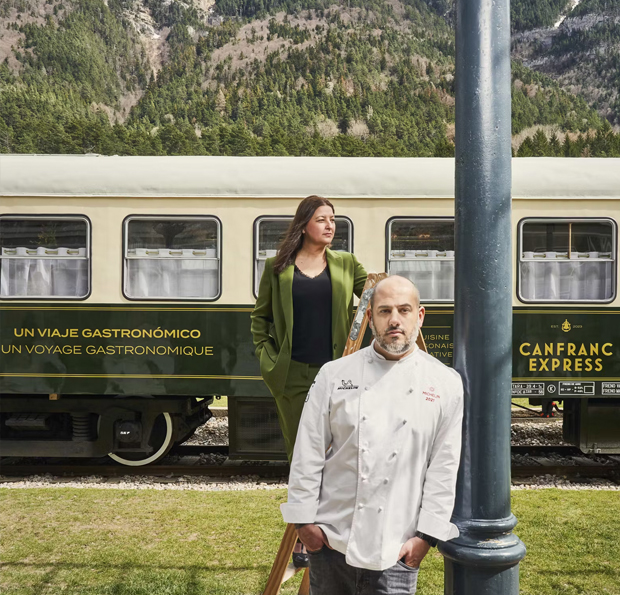 No hay mejor lugar para escapar de tanto petardo calzando botas de apresquí, que reservando habitación en este establecimiento que ofrece comodidad en unas instalaciones montadas a todo tren. Las camas son enormes, mullidas, con ropa de jeque árabe, baños rechulos en los que queda elegantísimo sacarse con pinzas los pelos de la nariz, y una oferta hostelera gestionada por Antonio Salanova, que tiene oficio y presume de flamante estrella Michelin en su vagón-restorán, escondido en los jardines. El lugar tiene historias para regalar, que si el wolframio y el oro de Moscú, aventuras de contrabando, correrías de frontera y leyendas ciertas o inventadas que escuchas boquiabierto y provocan hambre y sed, pues el asombro cierra un rato el estómago pero dobla las ganas una vez recuperas aliento y respiración. Además de la cocina estrellada de alto copete, hay una oferta más relajada que reúne platillos muy apetecibles, ensalada César, ensaimada hojaldrada rellena de filete tártaro, ensaladilla de fonda, migas aragonesas con huevo frito, croquetas de jamón ibérico o “tartiflette” a la maña o pastel de patatas y queso con panceta, queso Reblochon y cebolla sofrita de Fuentes de Ebro. Si cenan, disfrutarán de la compañía de muchas parejas de guiris, formando escenas como de película de Woody Allen, metiéndose entre pecho y espalda “entrecotes”, lomos bajos, milanesas de costilletas de ternasco, hamburguesas con salsa pringosa y solomillos Rossini con foie gras a caballo, plancheado. Las salsas y los jugos son de manual, bien resueltas, rusten los huesos en el horno, agregan vino, verduras y caldo, fuego lento mil horas, reducen y ligan con puré de foie gras o brisuras de trufa, chorrete de vinagre y brandy. Algunos le arrean al ternasco con patatas a lo pobre con ajoaceite y una ensalada de lechuga y cebolleta al costado, para que se mezclen los jugos de la carne y el aliño, formándose un barrillo que se refriega con pan. Es casa de guisoteo, como pueden comprobar. Pero no se vayan todavía, que aún hay más. Carrilleras con puré trufado y ñoquis de patata empapados en mantequilla o canelón relleno con bechamel y jugo de carne ligado, brillante. El flan de la abuela Angelines está que se sale, cremoso, rebosante de yemas y nata, cocinado a fuego dulce para que no forme burbujas en su interior y cuaje como un magma cremoso. También hay torrijas, crema de yogur de oveja de Val de Cinca, tartas o helados. Disfruten, que nos quedan dos telediarios.