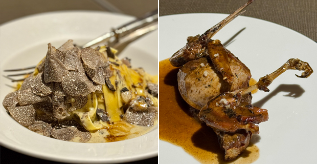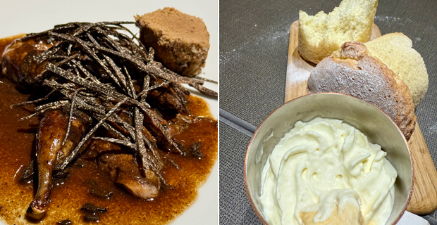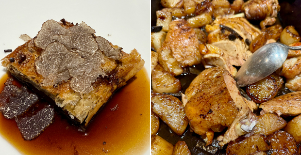 Entro en cocina y me asaltan los recuerdos del Can Fabes de Santamaría, los pucheros de cobre escupen sofritos. Dos jóvenes despluman pájaros. Otro desuella una liebre colgada de un madero. Amasan pan. Deshuesan perdices, para rellenarse al modo de Alcántara. Añaden tomillo a una sopa de pan, que hierve con pequeños albondigones de cerdo. Sacan del horno bandejas de bizcochos, atizan en un mortero una picada y menean sobre la chapa una crema inglesa fosforescente, petada de granos de vainilla. Todo es un desmadre. Nunca falta una cena de fonda y te sirven lo que hay, pechuga de pato rellena de foie gras, sopa de pan, trinxat con panceta, pollo al horno con nabos o un bizcocho de pellizco con su chupito de Chartreuse. Fiambre, sopa, restos, asado y postre. Y a dormir. Rosa no quita ojo, siempre al quite, todo fluye, todos gozan. Una pareja de jovencitos alucinan. Un anciano cierra los ojos cada vez que abre la boca y nadie hace fotos a los platos en un comedor que parece el refectorio de los monjes blancos que pintó Daniel Vázquez Díaz en el monasterio onubense de La Rábida. La pequeña bodega plantada en mitad de la sala parece una escultura de Richard Serra. Y la segunda cena es de almanaque de Grimod de La Reynière. Hojaldre de corzo con trufa, huevos fritos con más trufa y puré de patatas, pasta a la crema con mucha más trufa, y una papillote de trufa gorda y rechoncha al horno, con tocino y coles. Canelones sepultados en muchísima más trufa, perdiz rellena y becada asada de pechugas gordas como las de un pollo, sobre una tostada refregada con un picadillo de sus vísceras y de lo que resta de trufa. Nada falta, nada sobra. Sin hierbas, ni esferas, ni pétalos, ni trazos, ni discursos baratos. Todo cae en el plato con naturalidad. De postre, flan, tocino y mandarina, y si te quedas con hambre, amenazan con fricandó de ternera. Pasa un año y recuerdas todos los platos. Disfruten, que nos quedan dos telediarios.