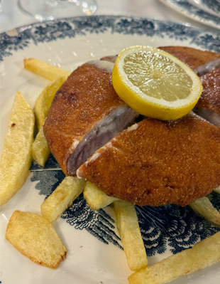 Vayamos al turrón. El patrón del “Casas” es Manolo y corta jamón a cuchillo como Rostropovich tocaba con su cello las suites de Bach. Con sus ochenta largos, corretea por las mesas, dejándose ver y saludando a su parroquia. Si son capaces de tentarlo, les cortará una ración de jamón apoyando la pata sobre la mesa, pezuña en alto. No se les ocurra sacar el móvil y grabarlo porque ese momento es para ustedes, alucinen con su virtuosismo y disfrútenlo. Tiene su intríngulis cortar un jamón amarrado al jamonero, así que imagínense hacerlo al aire y sin soltarlo, despachando lonchas sobre un plato de loza. Si lo interrogan les saltará a la yugular con su gracia serrana, echando pestes sobre el ego subido de los cortadores modernos que despachan lonchas estrechas y translúcidas, dibujando formas caprichosas sobre la vajilla. Sus chaflas son lonchas generosas de los tiempos de Curro Jiménez.