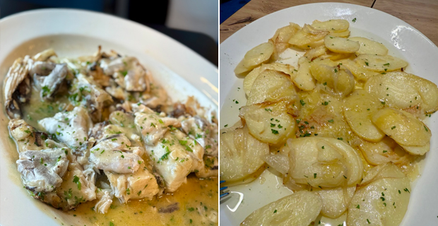 Vuelvo de los cerros de Úbeda para resaltar el oficio de Ana y Txemi en barra, sonrientes, majos, atentos y dispuestos a servirte con sonrisa franca esa caña fresca de cerveza, calamares fritos o un pincho de tortilla que lleva un rato diciéndote “cómeme”. Aitor Formoso es el refuerzo de cocina y el hijo pródigo que arrancó en la casa, marchó a hacer las américas y está otra vez de vuelta con esa muñeca fina de tenista devolviendo todos los reveses: te mira desafiante si le pides un cogote asado a la parrilla con kokotxas de merluza al pilpil, la pilla al vuelo y en un tris lo estás gozando en el pequeño comedor o en cualquiera de las mesas de la barra. Román y Elena, tanto monta, monta tanto, siempre presentes, respaldados por el personal y como en Fuenteovejuna, empujando todos a una. El tomate es que no hay restorán en el País Vasco que sirva material tan irreprochable, es de otro planeta. A veces no lo tienen ni en las cámaras del local, asaltan la pescadería vecina o cruzan la calle, bajan a la lonja y trincan perlones, itxaskabras, rodaballos, rapes, muxumartines, lubinas, merluzas, salmonetes o besugos. Manejan concha buena, gamba blanca de Huelva, quisquilla de Motril o lo que sea necesario. No se complican la vida, intentando sacar todo en su justo punto de cocción, sea rebozado, asado, frito, confitado, al pilpil o en salsa verde, igual da. Tienen algunos entrantes básicos para los más tímidos, pero sin dudarlo, vayan a comer aleta, caparazón y cascarilla sin miramientos. Rechupeteen huesecillos, unten salsas, mojen pan en los refritos y gócenlo. Disfruten, que nos quedan dos telediarios.