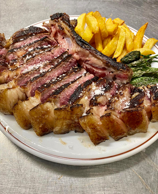 Son un asador de tomo y lomo que ofrece ese picoteo rápido o un comedor acristalado si tienes tiempo para masticar despacio, son timbre de gloria de esa hostelería normal y “disfrutona” que se lo curra para conseguir meterse en el bolsillo al cliente. Los fines de semana se llena hasta la bandera porque los urbanitas estresados corren a la sierra a relajarse y remojarse como torrijas en la tranquilidad del pueblo, llenando de bullicio la plaza de la Constitución, ¡qué gran capital son las casas de comidas familiares que colorean nuestra geografía! Hartos de los sándwiches de Rodilla y de comer de mala manera en la furgoneta, en el cuartito del microondas de la oficina o en el bareto guarro de la esquina con el runrún de las prisas y los bocinazos, se entregan a los brazos de los soberanos huevos rotos con jamón o chistorra o las croquetas de cocido, fraguadas con una bechamel currada a golpe de varilla.
