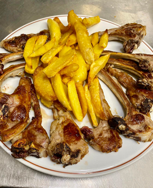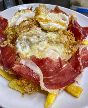 Son un asador de tomo y lomo que ofrece ese picoteo rápido o un comedor acristalado si tienes tiempo para masticar despacio, son timbre de gloria de esa hostelería normal y “disfrutona” que se lo curra para conseguir meterse en el bolsillo al cliente. Los fines de semana se llena hasta la bandera porque los urbanitas estresados corren a la sierra a relajarse y remojarse como torrijas en la tranquilidad del pueblo, llenando de bullicio la plaza de la Constitución, ¡qué gran capital son las casas de comidas familiares que colorean nuestra geografía! Hartos de los sándwiches de Rodilla y de comer de mala manera en la furgoneta, en el cuartito del microondas de la oficina o en el bareto guarro de la esquina con el runrún de las prisas y los bocinazos, se entregan a los brazos de los soberanos huevos rotos con jamón o chistorra o las croquetas de cocido, fraguadas con una bechamel currada a golpe de varilla.