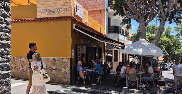 En Oasis llevan sesenta y cuatro años friendo auténtico pollo de Adeje, y no sabes si es porque el pollo es nativo o la receta bebe de la tradición local. Alguno se preguntará cómo demonios puedo recomendar este establecimiento y lo hago por lo peculiar y porque tienen amaestrada a su clientela, ¡hacen cola!, para ponerse ciegos de pollo frito, adictivo y pelotudo. La patrona es Graciela y elabora sus recetillas en la planta alta del local para que no le pispen adobos, mojos y elaboraciones varias, que un equipo diligente y apresurado va sirviendo a la velocidad del rayo por las mesas del comedor y la terraza. Son bastante bordes, quedan avisados.